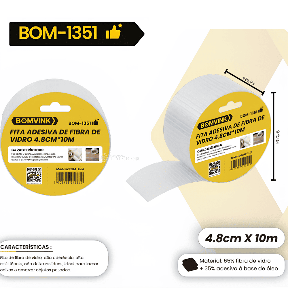 2 Rolos de Fita Reforçada De Fibra De Vidro Transparente 10 metros – BOM1351