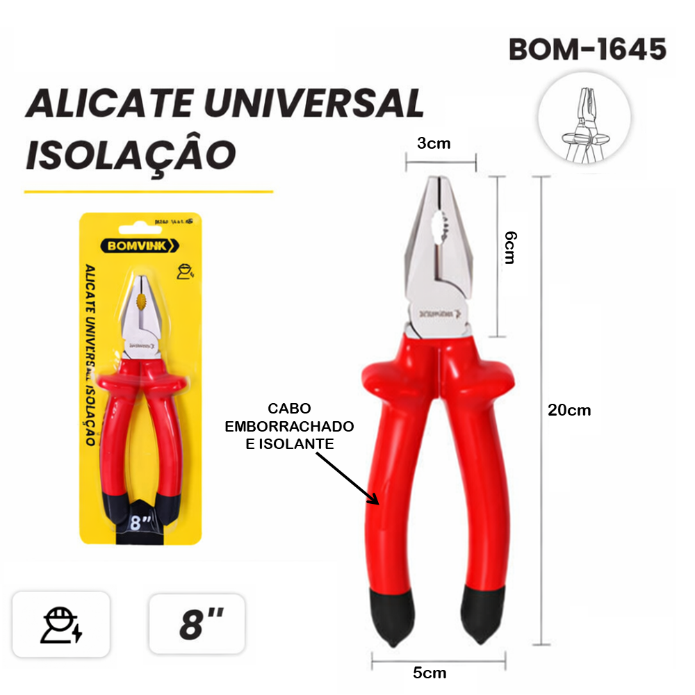 Alicate Universal 8'' Cabo Com Isolação Anatômico e Emborrachado - BOM1645
