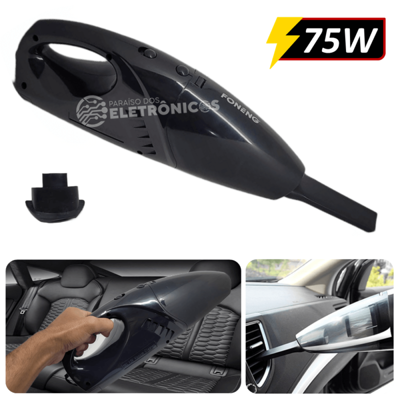 Aspirador de Pó Portátil 75w Para Carro Com Tomada Veicular Cabo de 4 Metros – AS906