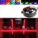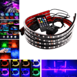 4 Barra de Tira de LED usado para iluminar todo o seu carro. Equipado com sensores de som que permitem que as luzes LED sincronizadas com a batida da música, permite que você aproveite a diversão com a mudança de cor seguindo o ritmo da música. Pode ser dobrado, enrolado e fixado no lugar facilmente Perfeito para ao redor da grade dianteira, no porta-malas, ao longo do painel, na parte de baixo do carro etc