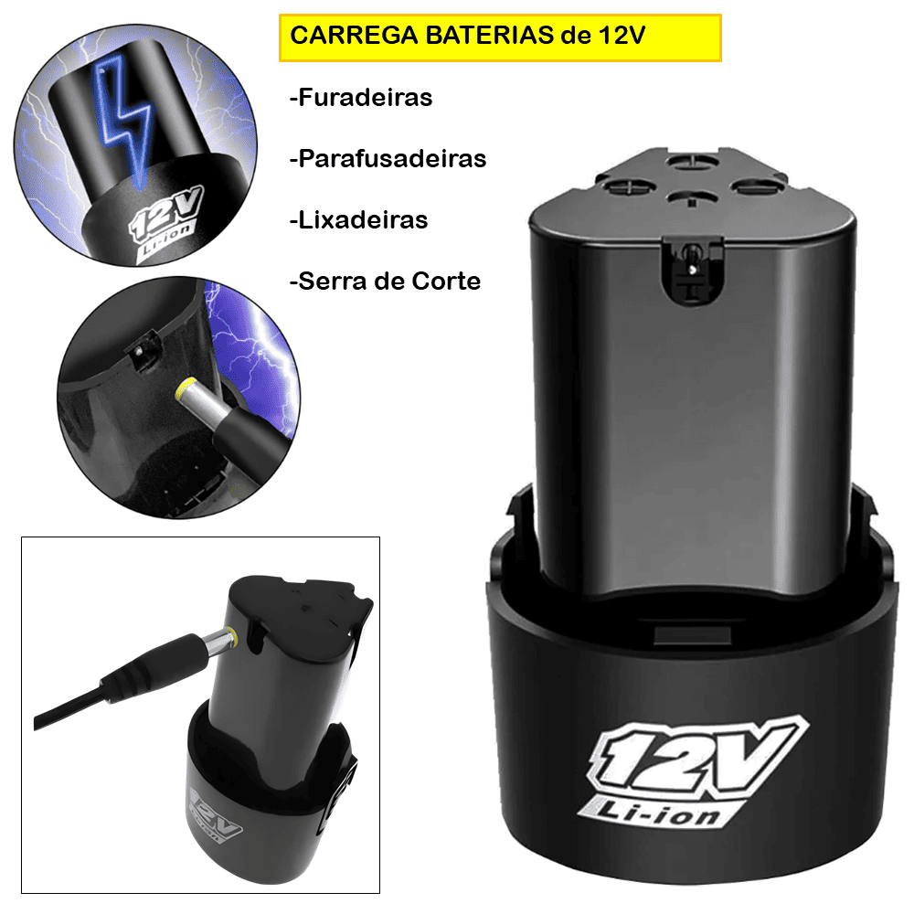 Indicado para: Parafusadeiras e Baterias de Lítio 12V