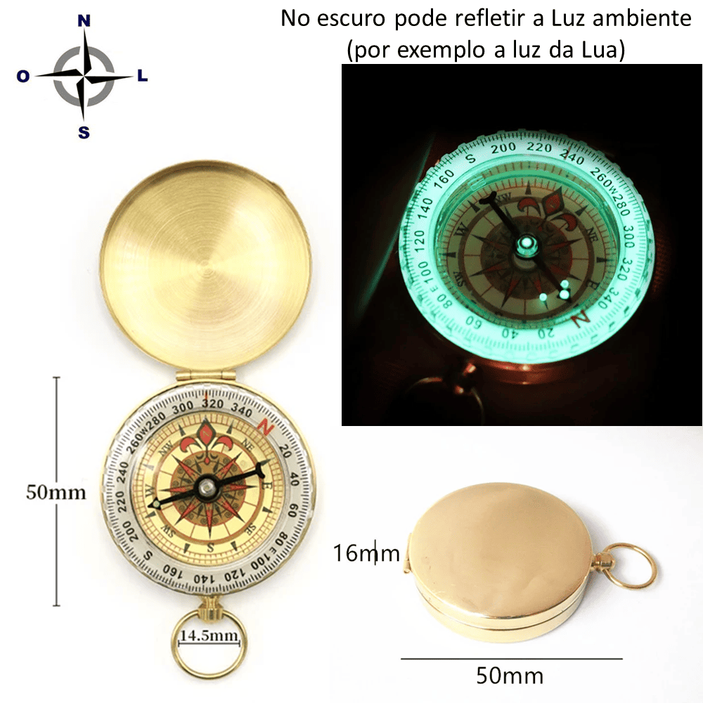 Design portátil, conveniente para transportar. Possui um anel na bússola que se prende a chaveiros, mochilas, etc.