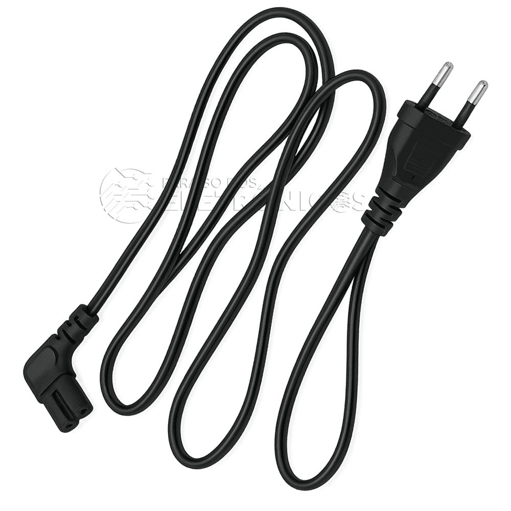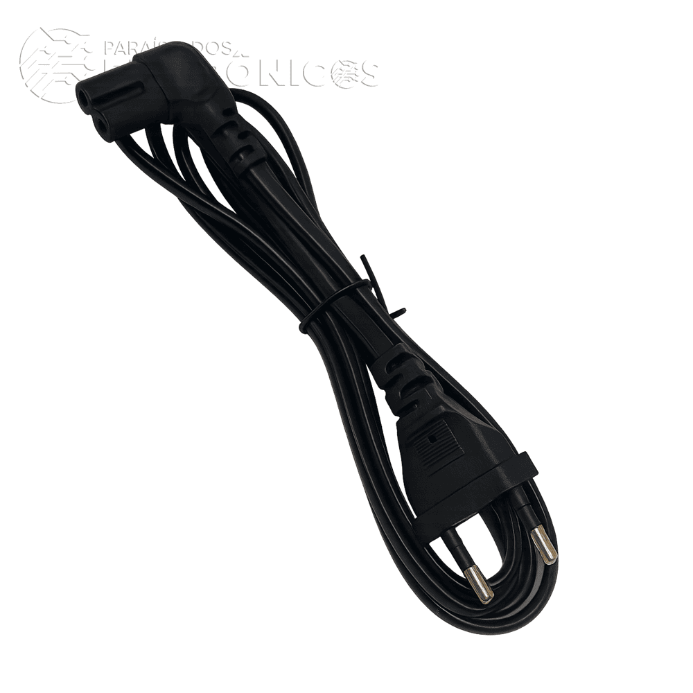 Este Cabo de Força Tipo 8 (bipolar) com plugue 90 graus é ideal para alimentar diversos equipamentos eletrônicos com segurança e eficiência.