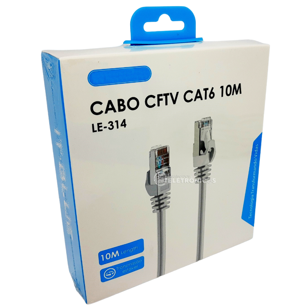 Cabo de Rede RJ45 CFTV CAT6 Com 10 Metros Conector Banhado a Ouro – LE314