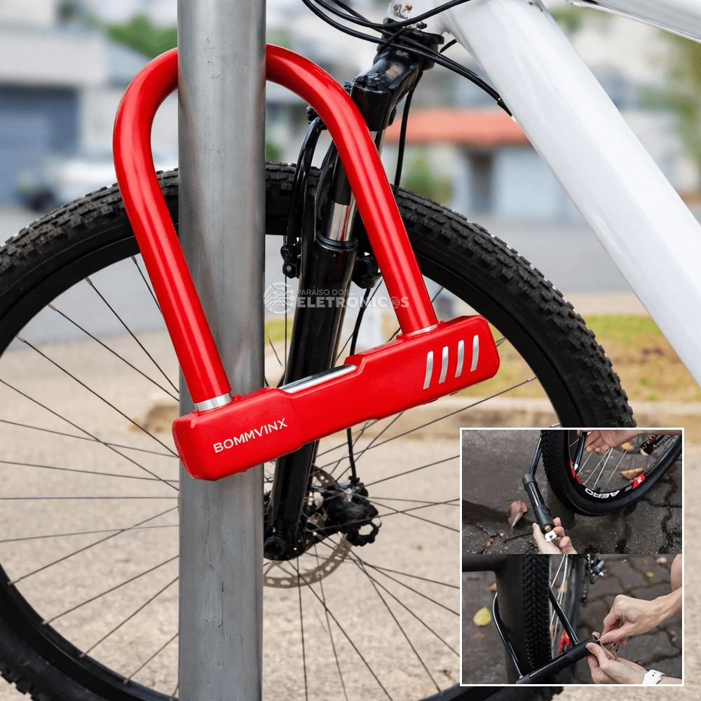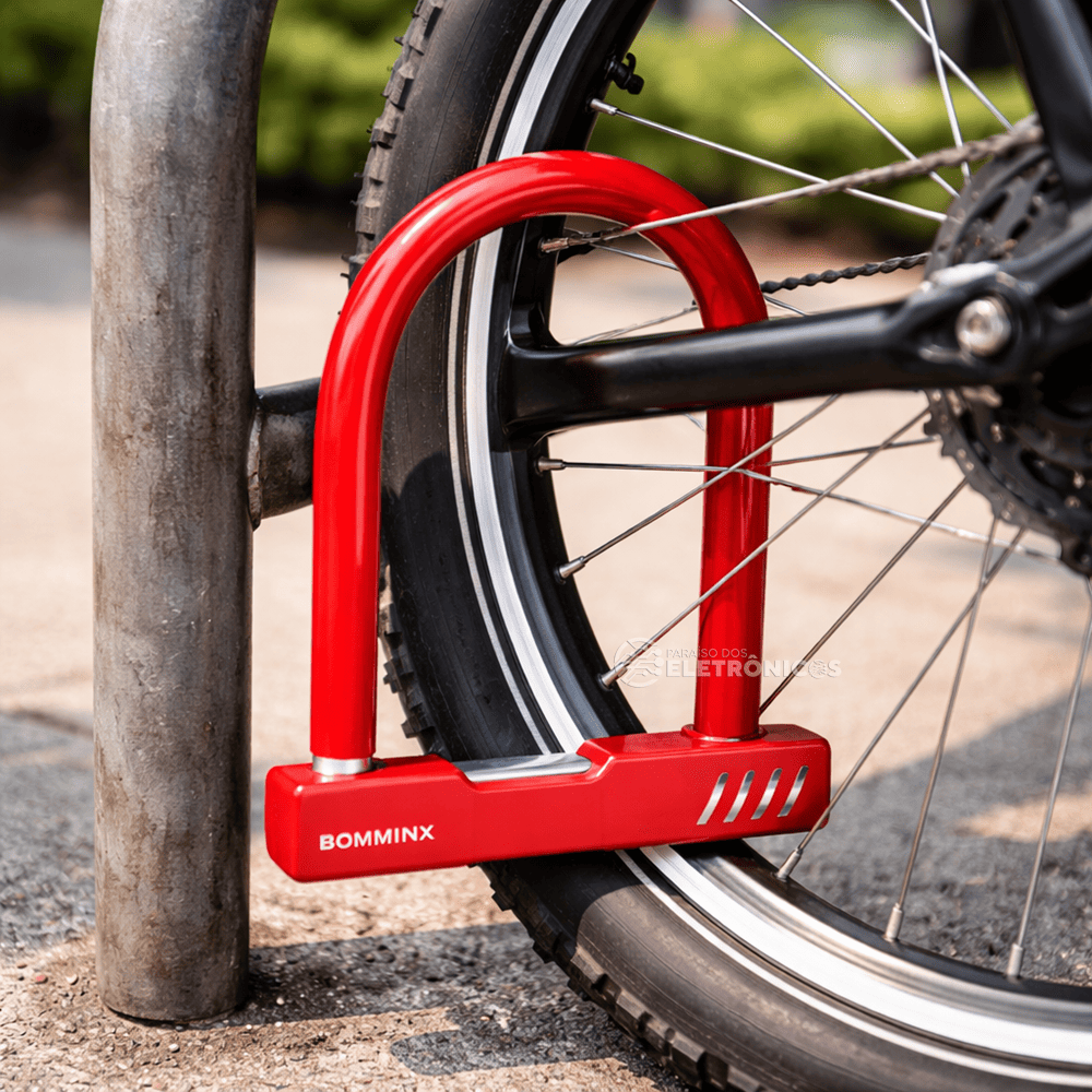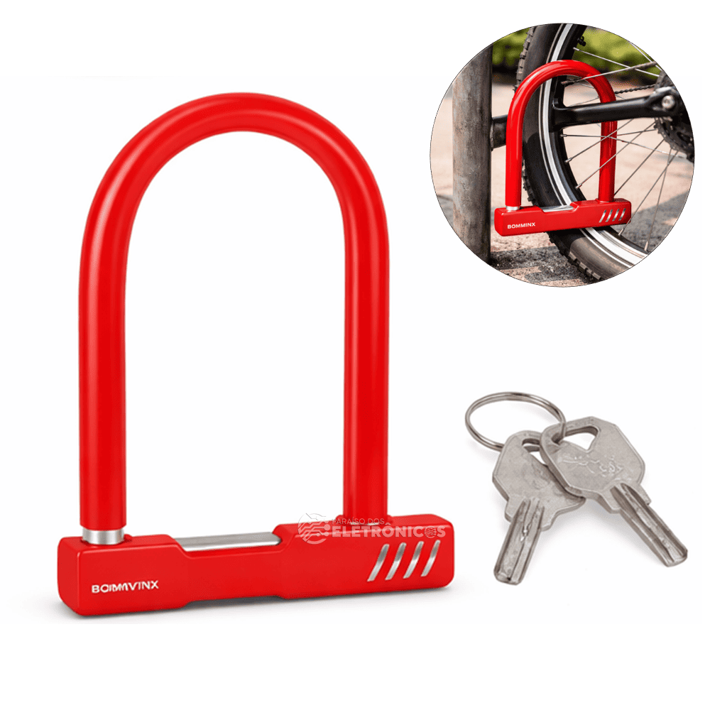 Cadeado U Reforçado Bicicleta e Motos Revestimento Protetor 13mm – VermelBOM2650
