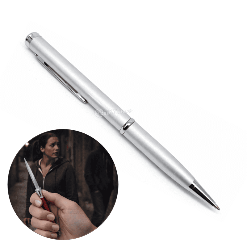 Caneta Canivete Lâmina Afiada Aço Inoxidável Defesa e Proteção – Prata SLKD172