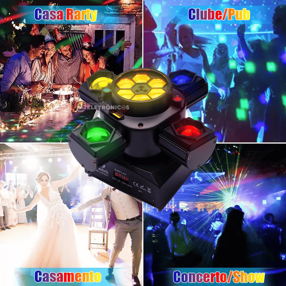 Perfeito para: festas, baladas, DJs, casamentos, bares, palcos, clubes, salões de dança, eventos corporativos e produções profissionais.