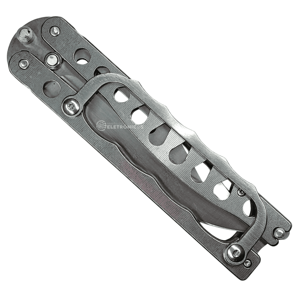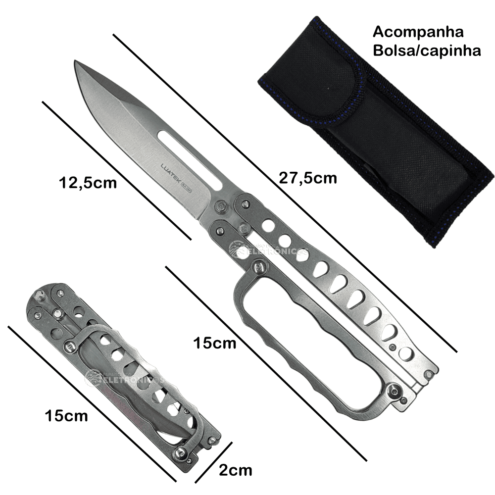 O mecanismo de abertura manual com trava assegura operação fluida e protegida, enquanto o clip de cinto reforçado permite transporte rápido. A construção full metal em aço inoxidável resiste a impactos e corrosão, e a capinha protetora inclusa preserva o fio da lâmina. O diferencial fica por conta do cabo vazado – que melhora a aerodinâmica e aderência – e do suporte ergonômico que previne fadiga durante uso prolongado.