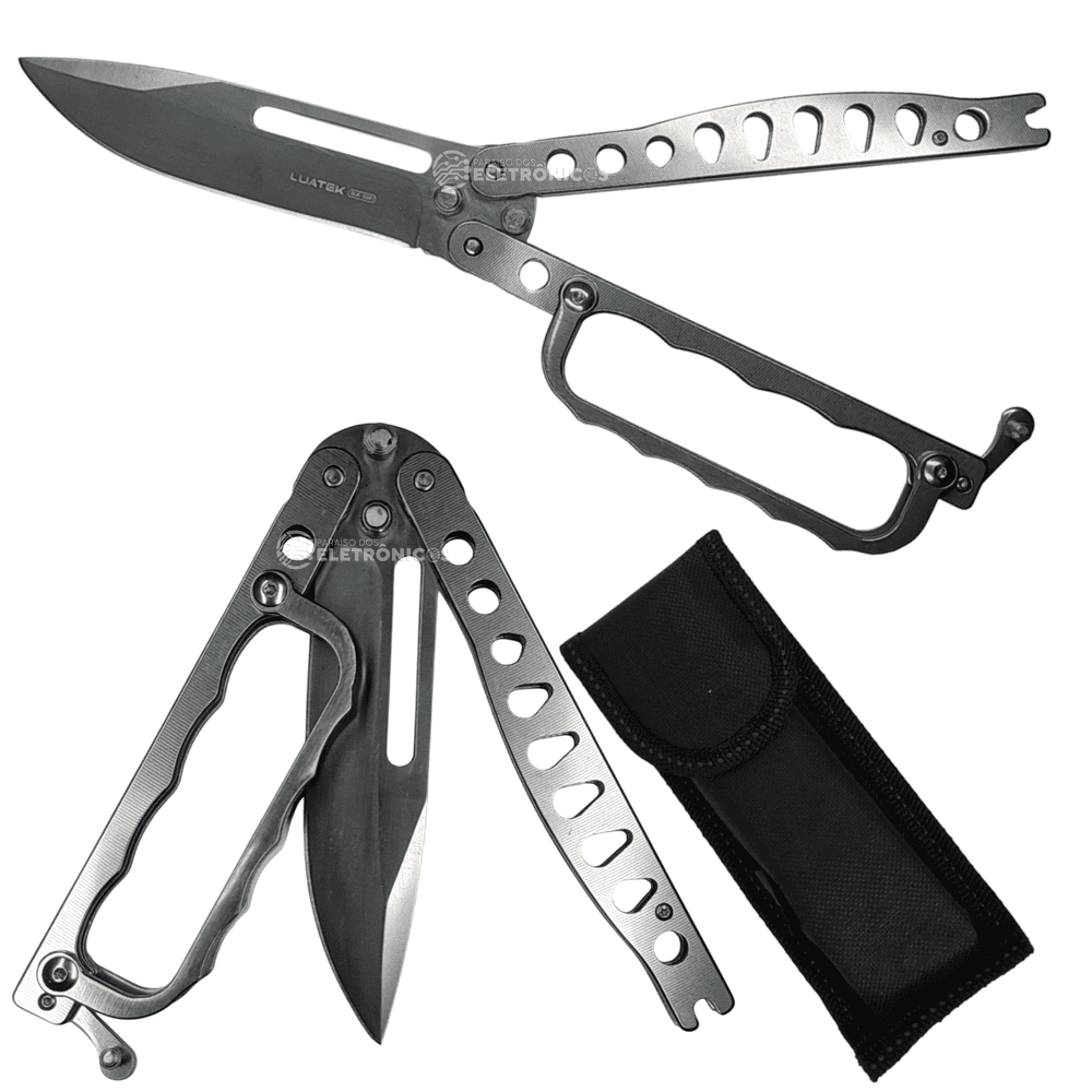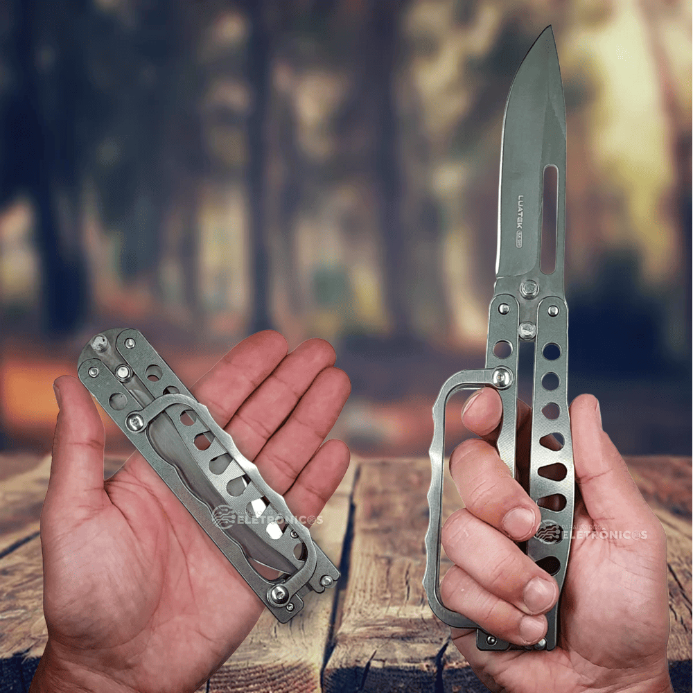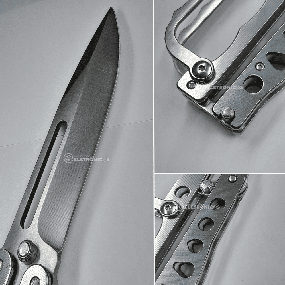 Canivete Butterfly Profissional Com Cabo Vazado e Suporte para Mão – Prata SLKD341