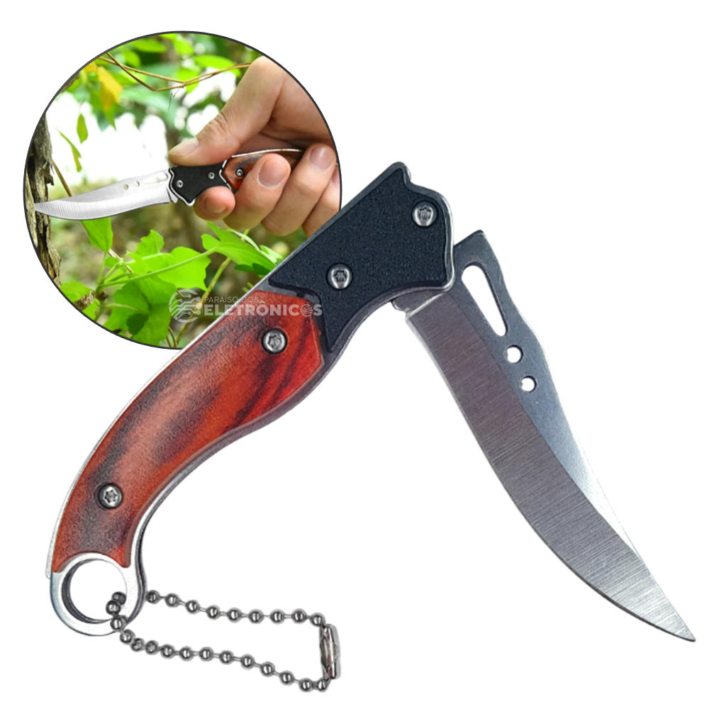 1 Canivete Chaveiro Retrátil Cabo Em Madeira – XV3094