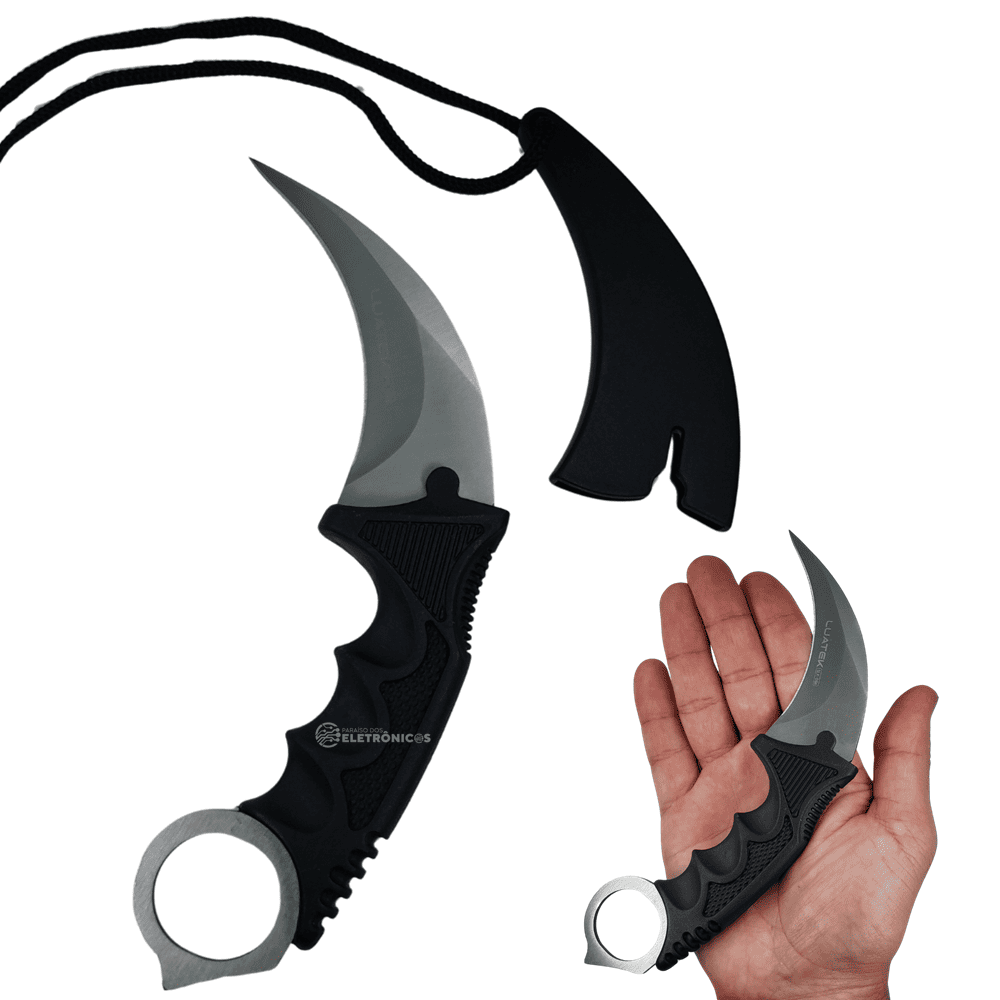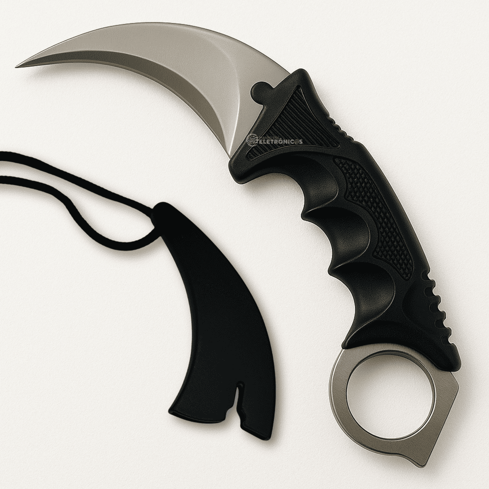 Esse produto é uma faca karambit (ou karambit knife), um tipo de faca curva originária do Sudeste Asiático, tradicionalmente usada em artes marciais. Hoje em dia, ela também é bastante popular como item de colecionador, ferramenta de uso tático ou até mesmo em jogos de videogame, onde facas como essa são altamente valorizadas por seu design.