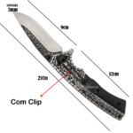 O cabo, feito em aço e madeira, complementa perfeitamente o visual refinado do canivete, com 12 cm de comprimento, proporciona uma pegada firme e ergonômica, garantindo estabilidade durante o uso. O mecanismo de abertura semiautomática facilita o manuseio rápido, enquanto a trava de segurança impede aberturas acidentais, aumentando a proteção do usuário. Além disso, o clip de cinto integrado torna o transporte prático e discreto, ideal para quem deseja ter a ferramenta sempre à mão.
