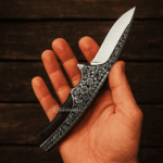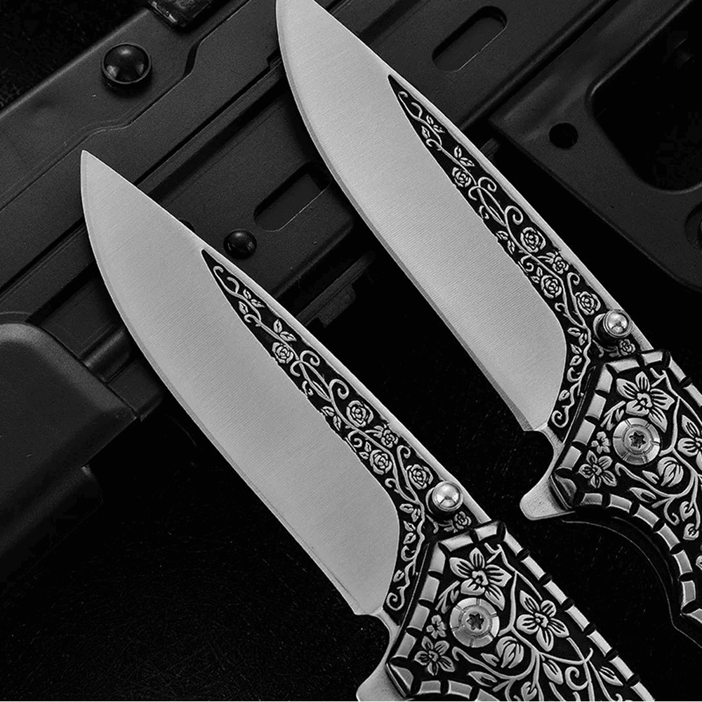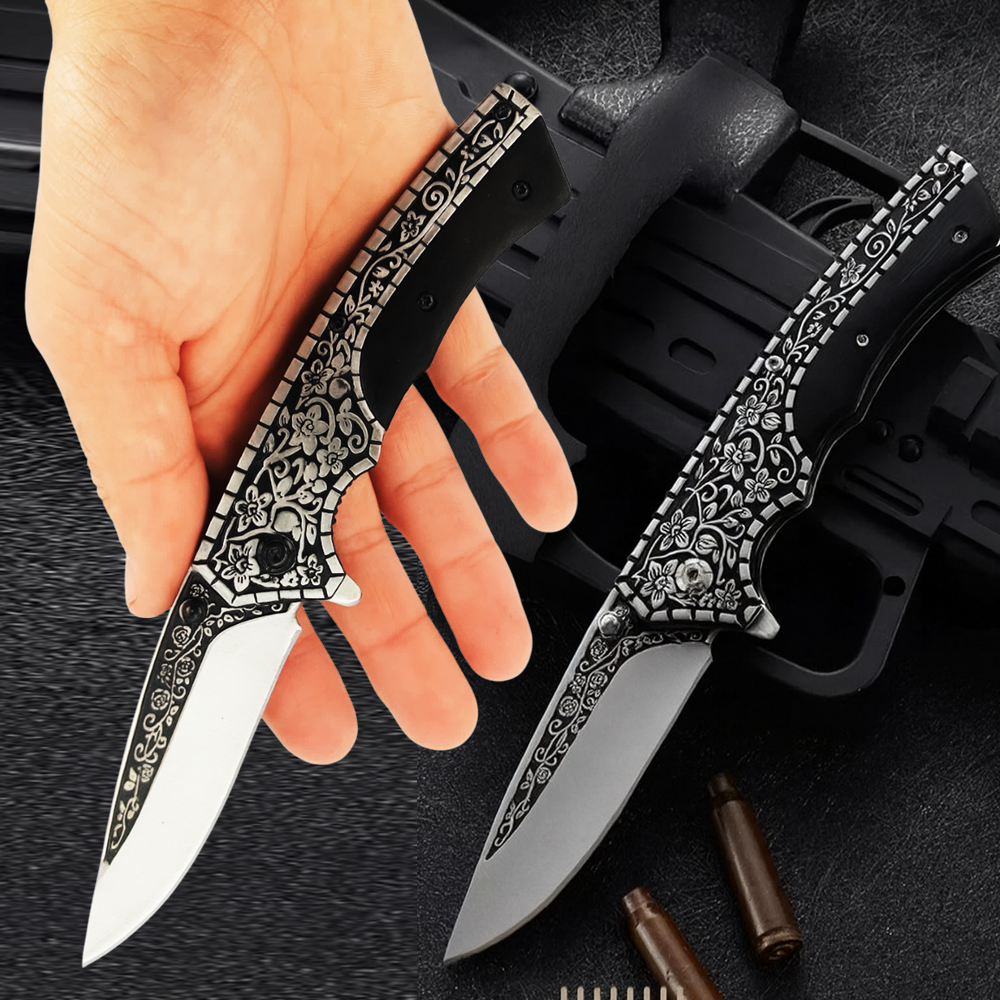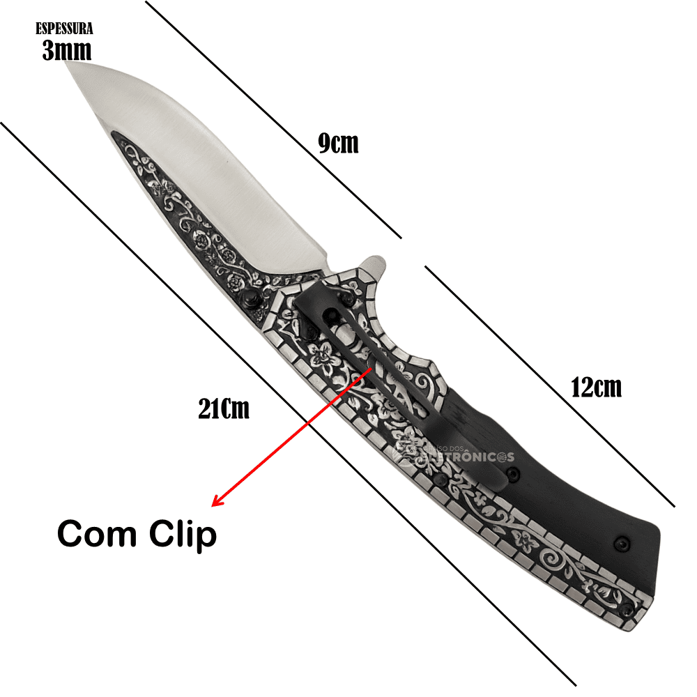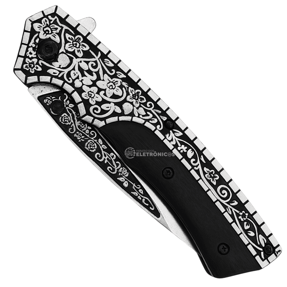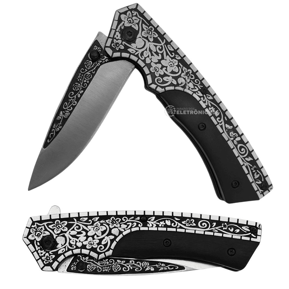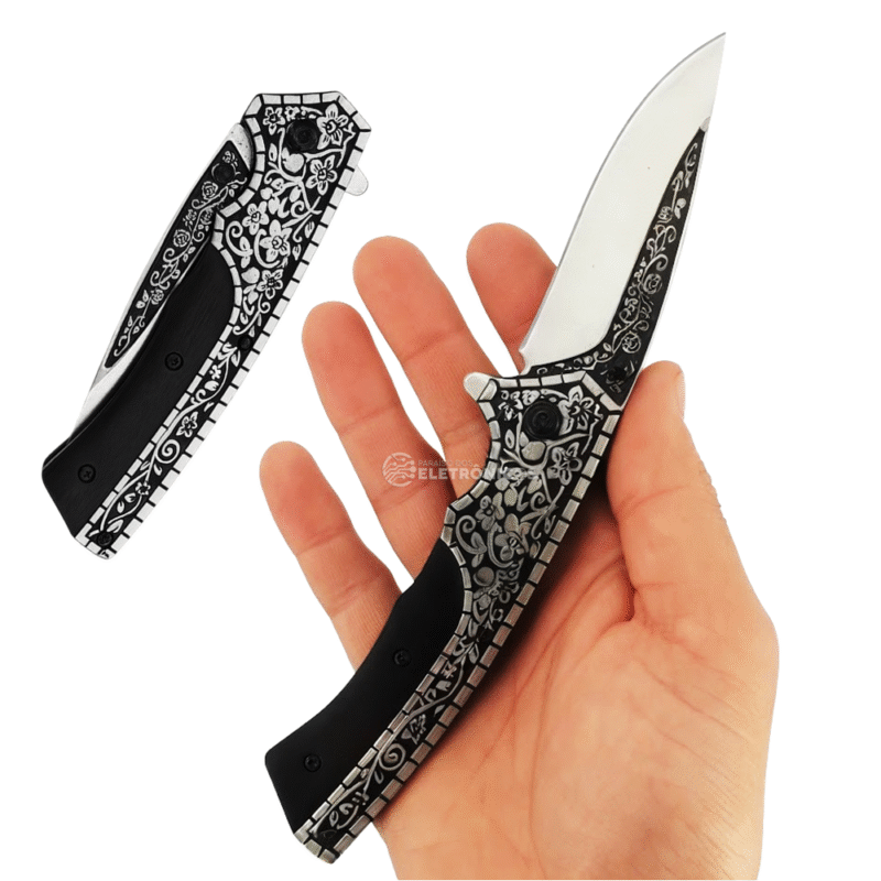 Este canivete modelo TC16 é uma peça de destaque que combina elegância e funcionalidade. Sua lâmina de aço inoxidável oferece alta durabilidade, resistência à corrosão e um corte preciso, ideal tanto para uso cotidiano quanto para atividades ao ar livre. Com 9 cm de comprimento e 3 mm de espessura, a lâmina possui excelente equilíbrio entre robustez e leveza, tornando o manuseio seguro e confortável. O acabamento prateado com detalhes florais em relevo confere um toque artístico e sofisticado ao design.