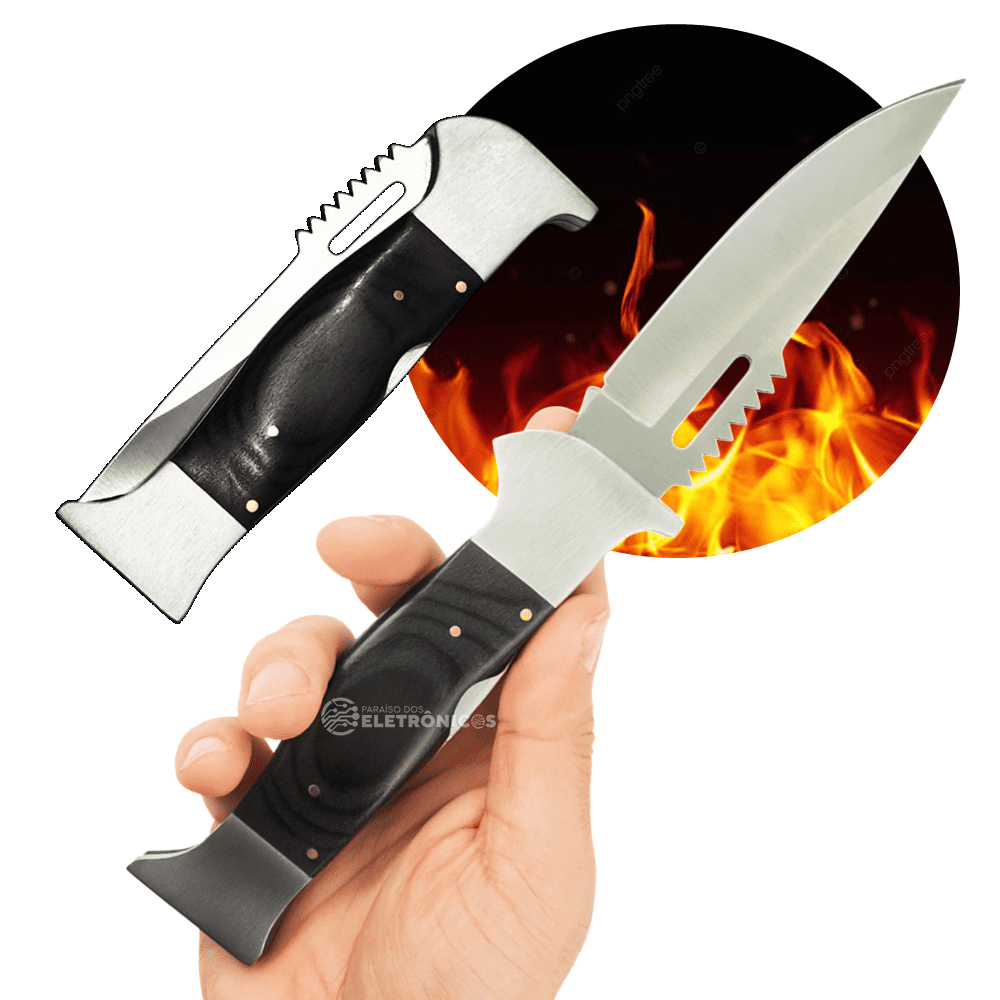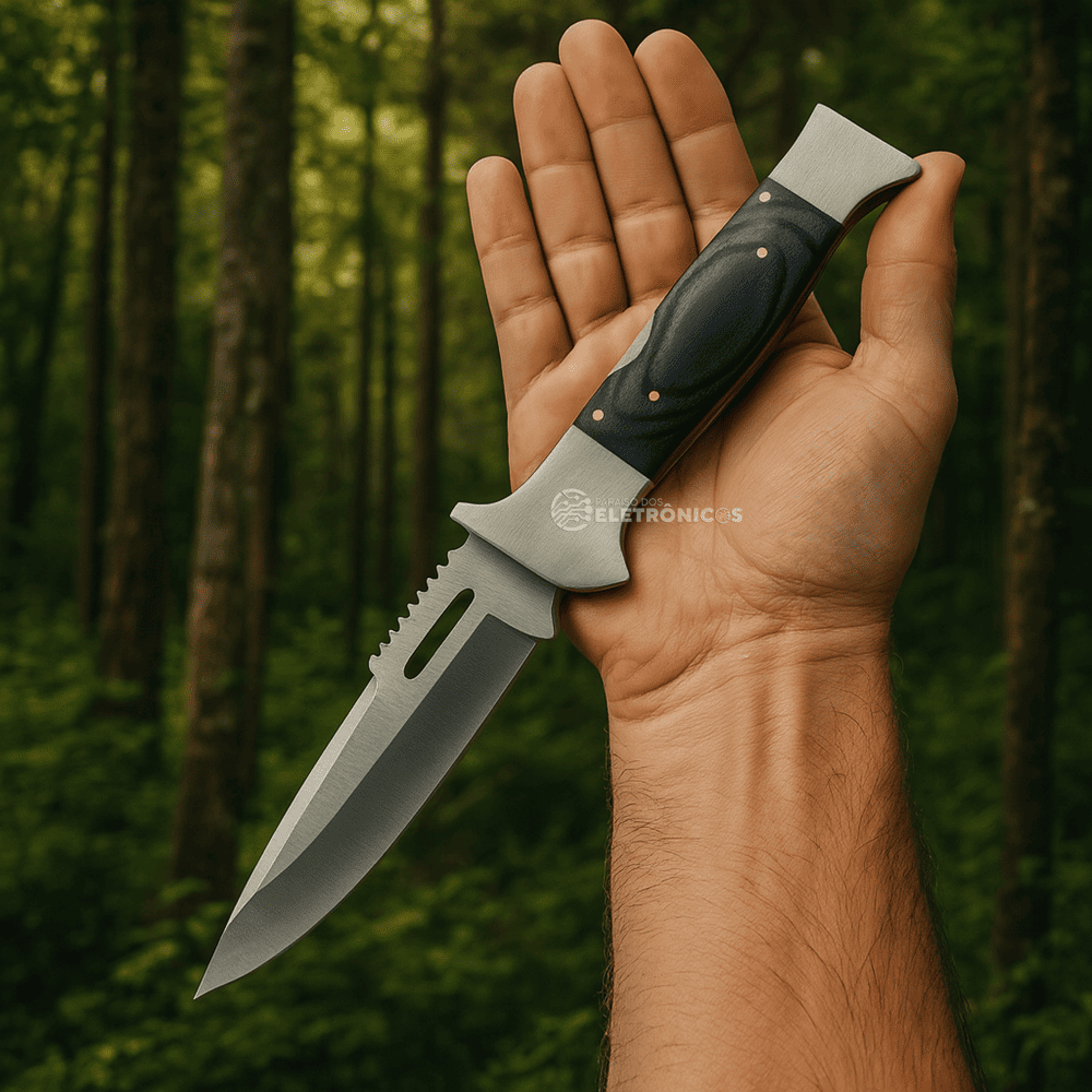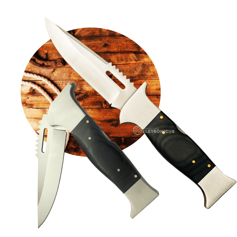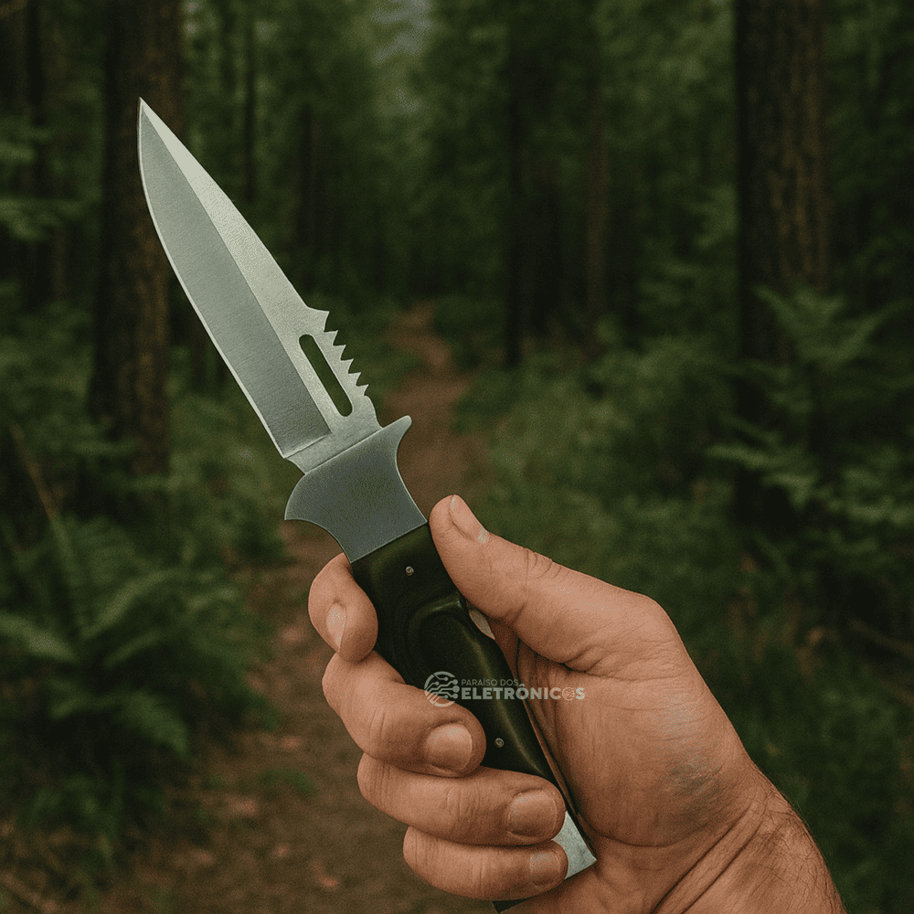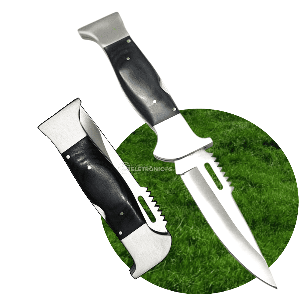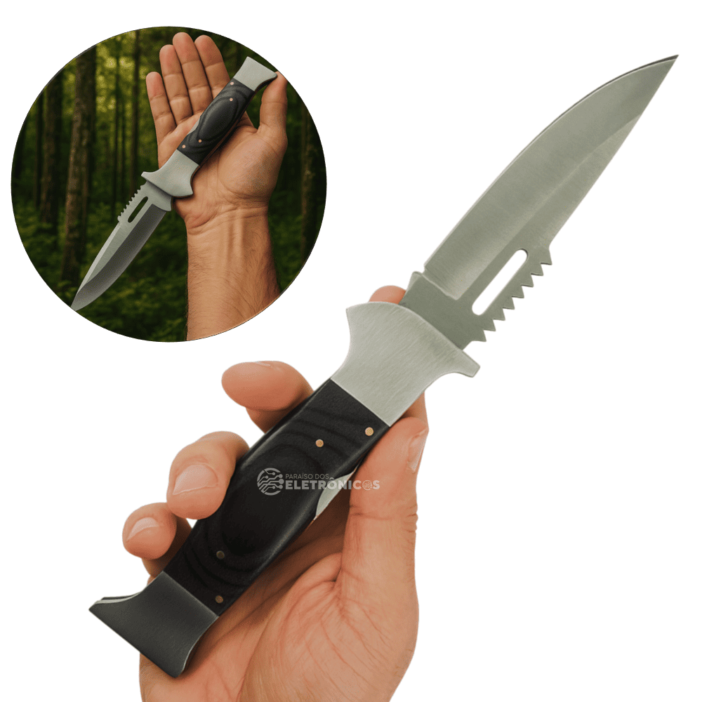 Canivete Grande 25,5cm de Sobrevivência em Aço Inoxidável Cabo Amadeirado Cor Preto – TCMA