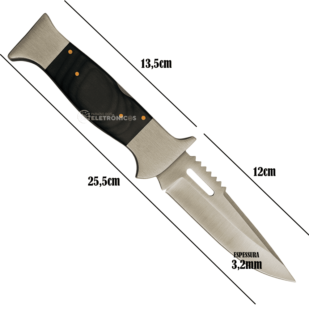 Canivete Grande 25,5cm de Sobrevivência em Aço Inoxidável Cabo Amadeirado Cor Preto - TCMA
