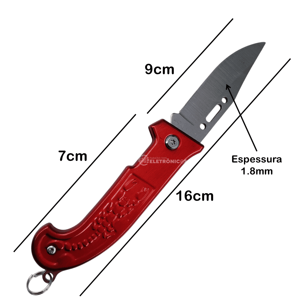 Canivete Lâmina Aço Cabo Em Polímero Relevo Escorpião – Vermelho SLKD52