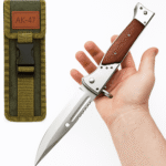 O Canivete Modelo 726A é uma ferramenta robusta e versátil, ideal para quem busca qualidade e praticidade no dia a dia. Com lâmina de aço inoxidável de alta resistência e espessura de 18,5mm, ele garante cortes firmes e precisos. Seu sistema de abertura semiautomática proporciona agilidade e segurança no manuseio, enquanto a trava de segurança assegura estabilidade durante o uso. Além disso, possui opção de uso como baioneta, ampliando sua funcionalidade.