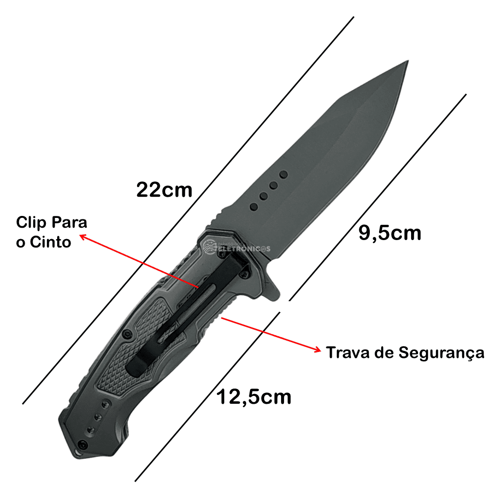 Robusto, prático e com design marcante, o canivete compacto modelo SLK-D324 é a escolha ideal para quem busca funcionalidade e resistência no dia a dia. Fabricado inteiramente em aço inoxidável, ele oferece durabilidade e alto desempenho mesmo em condições exigentes. Com abertura semiautomática, lâmina de 9,5 cm e trava de segurança, garante agilidade e firmeza no uso. Seu clip de cinto/bolso proporciona praticidade no transporte, ideal para acampamentos, trilhas, pesca ou uso tático.
