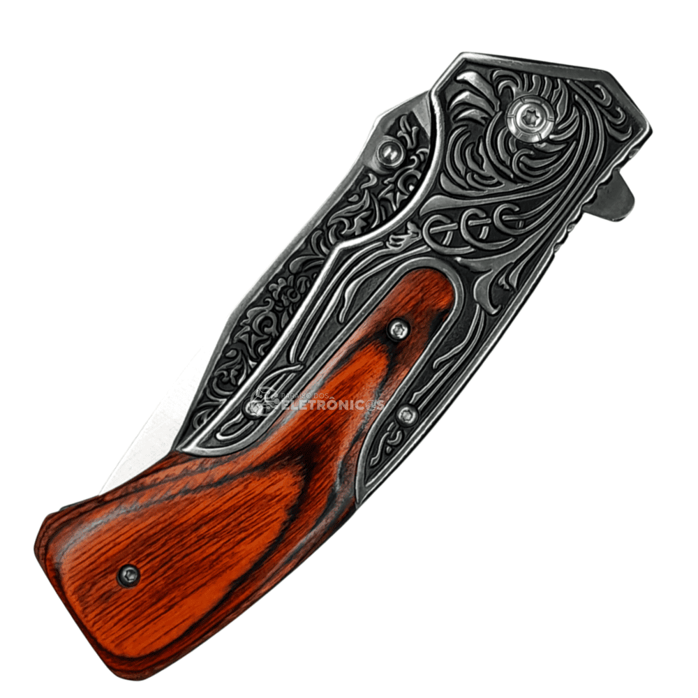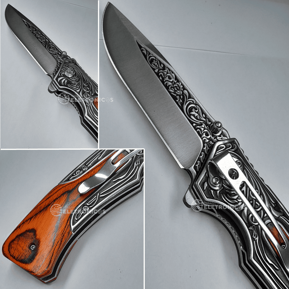 21.8cm Descubra o equilíbrio perfeito entre tradição e inovação com o D124! Seu exclusivo cabo em madeira nobre e aço inoxidável oferece um toque sofisticado, enquanto o mecanismo semiautomático garante abertura rápida e segura com apenas uma mão. O clip de cinto/bolso integrado permite levar seu canivete com estilo e praticidade, tornando-o ideal para uso diário ou ocasiões especiais.