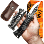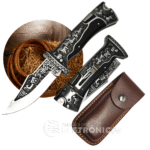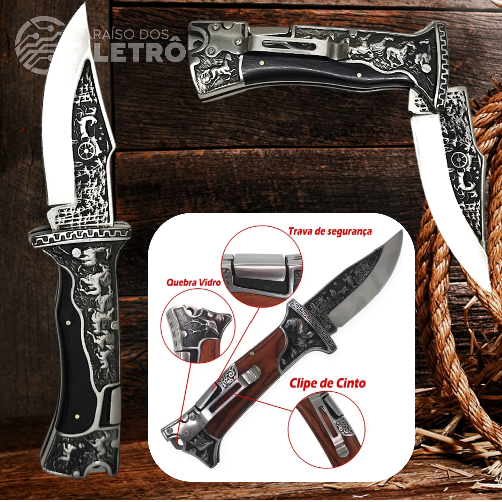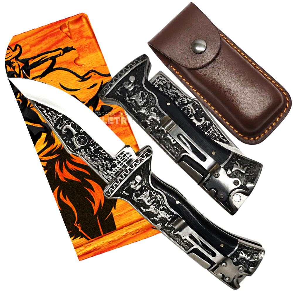 Com 227mm de comprimento total e peso líquido de 320g, este canivete é robusto e confiável para uso diário ou colecionadores exigentes. Possui abertura semiautomática, trava de segurança, clip para cinto/bolso e acompanha bainha em couro, que garante praticidade no transporte e maior proteção da lâmina. Uma peça versátil, funcional e de acabamento impecável, ideal para quem busca qualidade e estilo em cada detalhe.