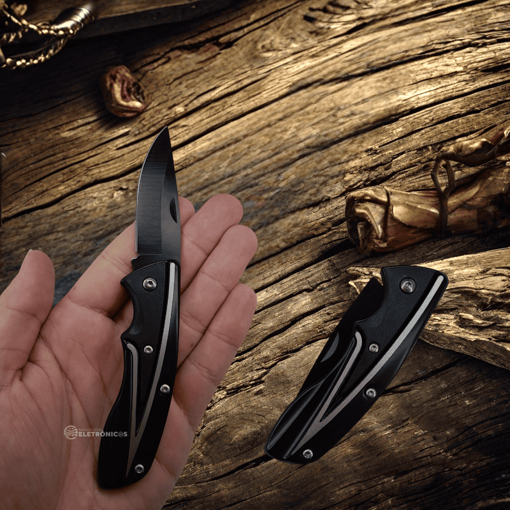 Canivete Retrátil Portátil De Bolso Para Camping Pesca Com Clip – Preto SLKD53