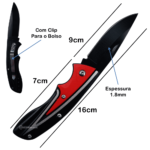 O Canivete de aço é resistente e de alta qualidade, sendo uma ferramenta ideal para quem busca praticidade, resistência e segurança. Um produto compacto com lâmina de 7cm em aço inoxidável e cabo fabricado em aço inoxidável, este canivete oferece durabilidade e excelente desempenho em diversas situações. Seu design compacto, com comprimento total de 16 cm e espessura da lâmina de 1.8mm, o torna perfeito para atividades ao ar livre, como caça e pesca.
