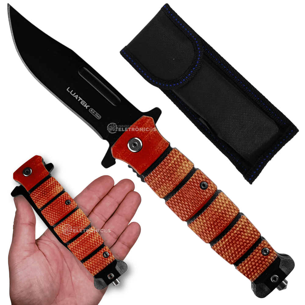 A lâmina de 9,4cm em aço inoxidável (2,8mm de espessura) proporciona cortes precisos e durabilidade excepcional. O sistema de abertura rápida com trava de segurança permite operação com uma só mão, enquanto o clip versátil (para cinto ou bolso) assegura transporte acessível. O design híbrido (ABS + borracha + aço) absorve impactos e vibrações, reduzindo a fadiga durante o uso. Inclui capinha protetora para máxima preservação – a escolha inteligente para quem não abre mão de conforto e desempenho.