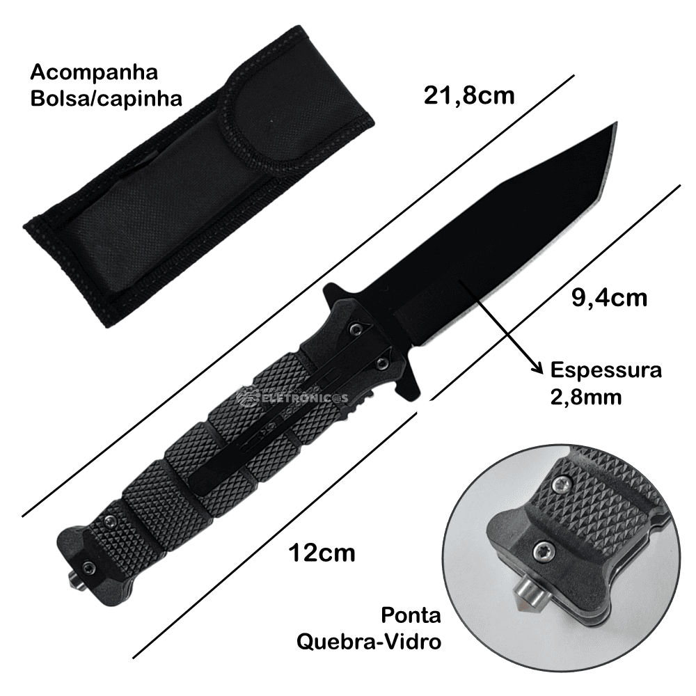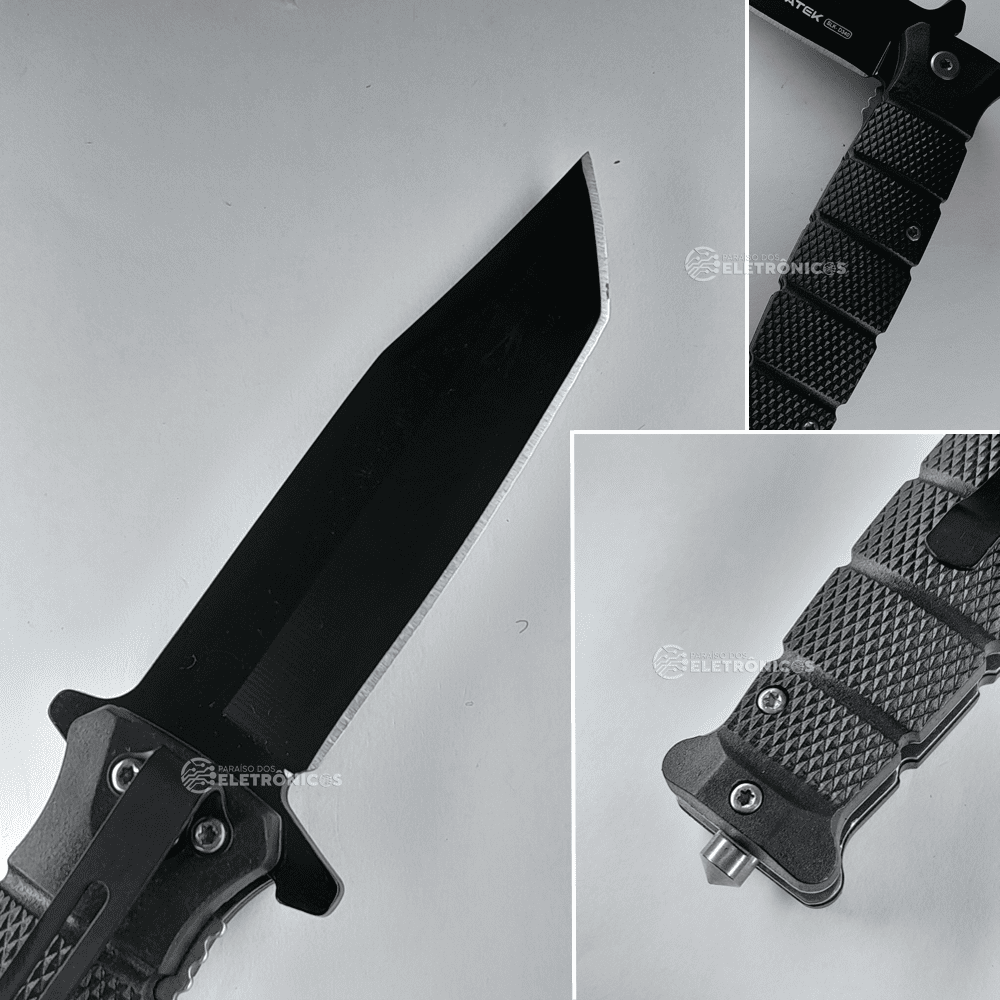 A lâmina de 9,4cm em aço inoxidável (2,8mm de espessura) proporciona cortes precisos e durabilidade excepcional. O sistema de abertura rápida com trava de segurança permite operação com uma só mão, enquanto o clip versátil (para cinto ou bolso) assegura transporte acessível. O design híbrido (ABS + borracha + aço) absorve impactos e vibrações, reduzindo a fadiga durante o uso. Inclui capinha protetora para máxima preservação – a escolha inteligente para quem não abre mão de conforto e desempenho.