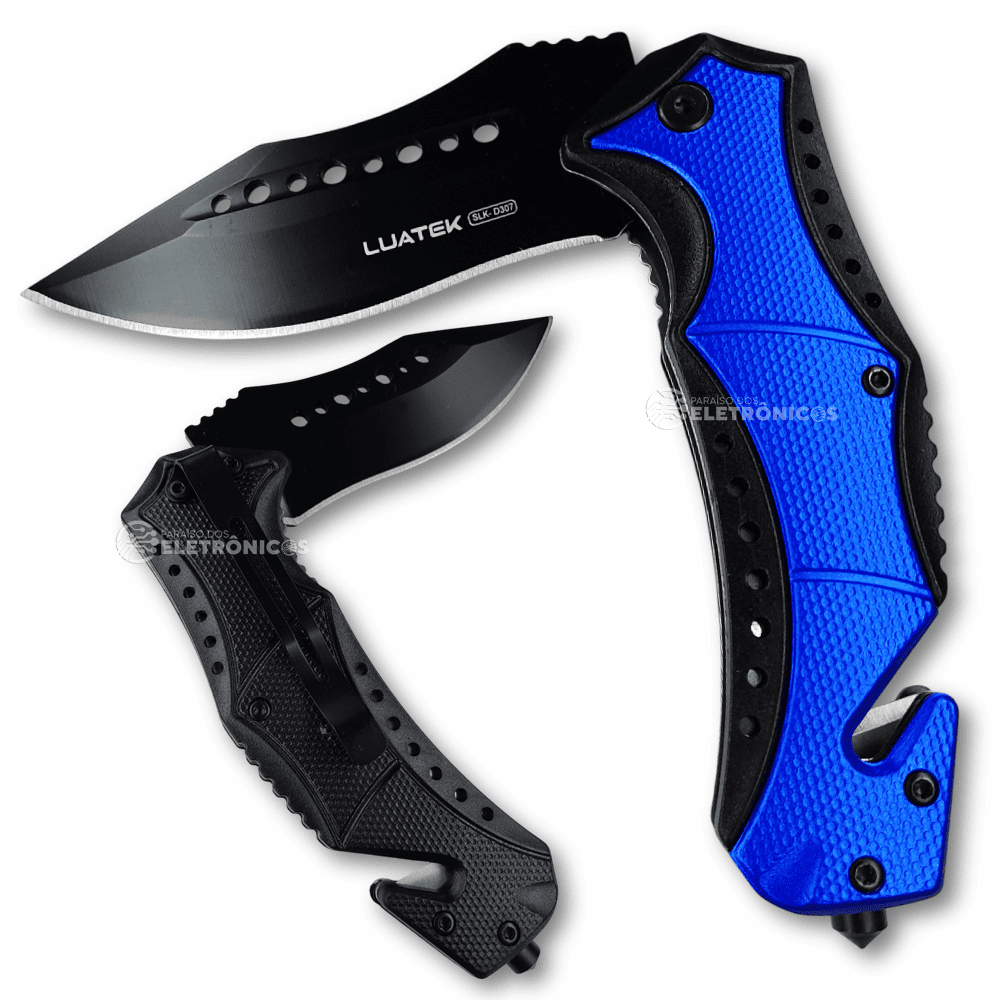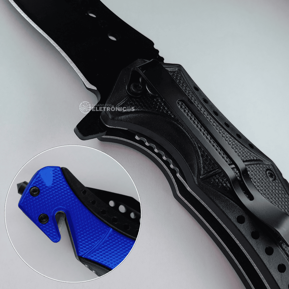 Canivete Tático com Quebra-Vidros e Cortador de Galhos Lâmina Reforçada 3,8mm - SLKD307A