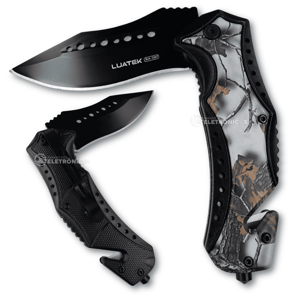 Domine qualquer situação com o versátil SLK-D307, equipado com funções profissionais integradas! Seu quebra-vidros de emergência e cortador de cabos/galhos fazem deste canivete um verdadeiro kit de sobrevivência compacto. A lâmina principal de 9cm com impressionantes 3,8mm de espessura (a mais robusta da categoria) oferece resistência incomparável para tarefas pesadas, enquanto o sistema semiautomático permite ação imediata quando cada segundo conta.