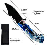 O cabo em ABS moldado com reforço em aço proporciona durabilidade extrema e conforto ergonômico, mesmo em uso prolongado. Com espessura de 2,8mm, a lâmina mantém estabilidade em cortes exigentes, enquanto o design balanceado (12cm no cabo) oferece controle absoluto. Inclui capinha protetora para preservar o fio da lâmina – ideal para profissionais de segurança, campistas e entusiastas de atividades ao ar livre que não abrem mão de equipamentos confiáveis.