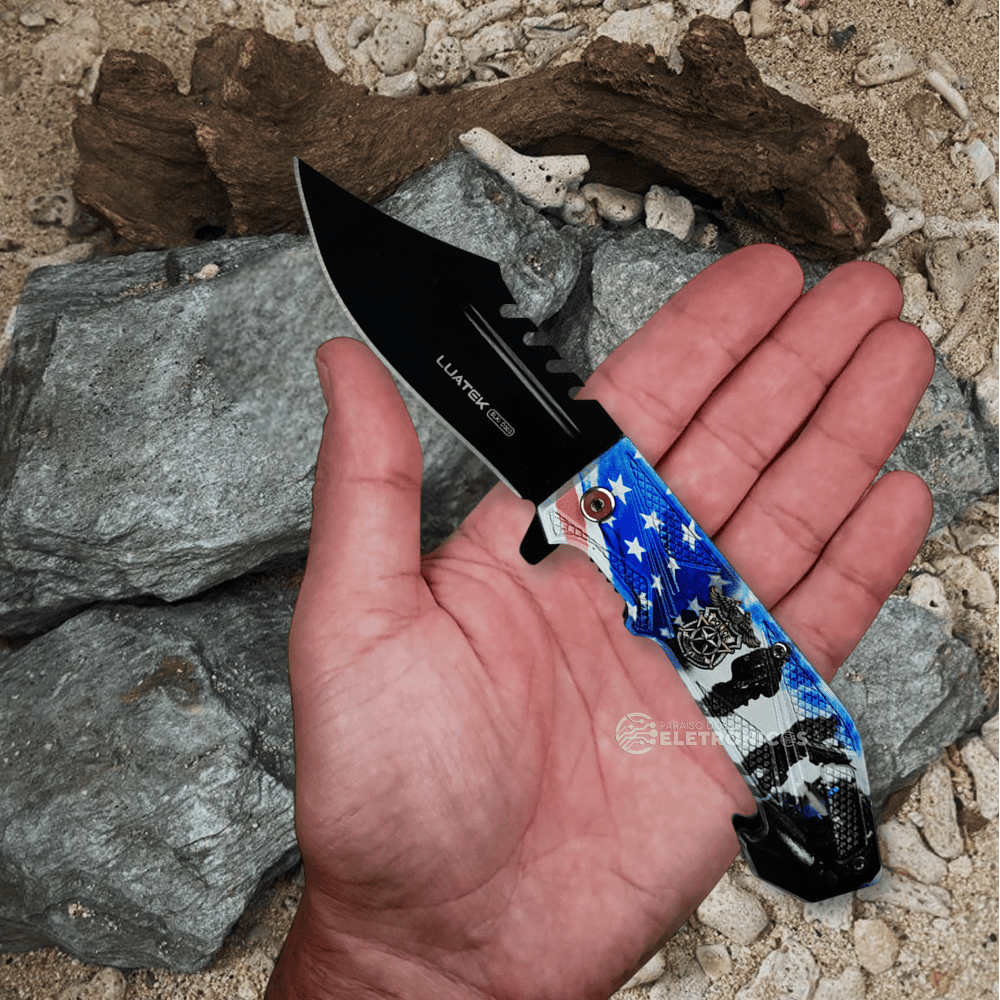 O cabo em ABS moldado com reforço em aço proporciona durabilidade extrema e conforto ergonômico, mesmo em uso prolongado. Com espessura de 2,8mm, a lâmina mantém estabilidade em cortes exigentes, enquanto o design balanceado (12cm no cabo) oferece controle absoluto. Inclui capinha protetora para preservar o fio da lâmina – ideal para profissionais de segurança, campistas e entusiastas de atividades ao ar livre que não abrem mão de equipamentos confiáveis.