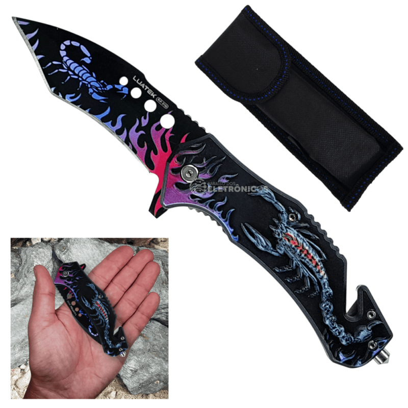 O canivete SLK-D103 é o companheiro perfeito para situações de emergência e aventuras radicais! Com design ultraleve (apenas 130g) e cabo em ABS moldado, oferece resistência extrema contra impactos. Seu diferencial? Inclui quebra-vidros e cortador de cabos integrados – ideal para motoristas, campistas e profissionais de segurança. A abertura semiautomática permite acesso instantâneo à lâmina quando cada segundo conta.