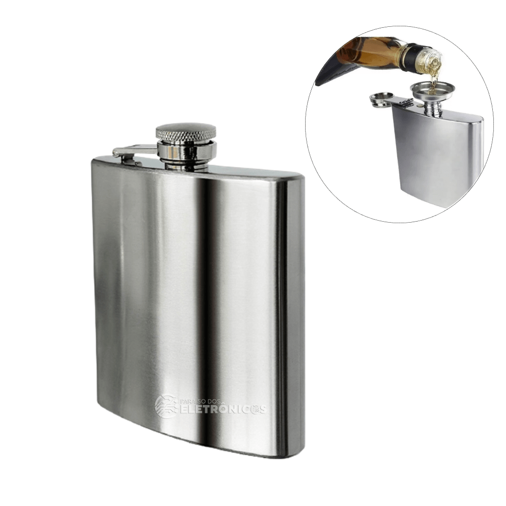 O cantil para bebidas é inteiramente trabalhado em aço inox escovado, o que o torna bonito, extremamente higiênico e lavável. Prático, cabe no bolso e pode ser carregado facilmente para qualquer lugar, já que seu formato levemente curvo facilita no momento de guarda-lo em lugares de sua preferência.