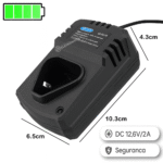 Acompanha Bateria de Lítio 12V 1.3Ah oferece desempenho e durabilidade para suas ferramentas elétricas, sendo compatível com uma ampla gama de dispositivos. Com capacidade de 1.3Ah, ela proporciona longa duração e eficiência para que você conclua seus projetos sem interrupções.