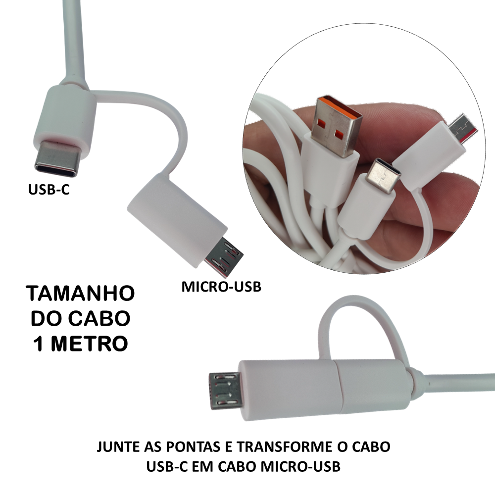 Cabo: USB-C e Micro-USB de 1 Metro