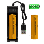 Indicado para carregar Baterias de lanternas tática de vários modelos 26650 / 18650 / 16340 / 14500 / 18500 / 16650 / 18350 / 10400, de 3.7v ou 4.2v.