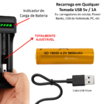 Carregador Universal USB Com 2 Baterias Recarregáveis 18650 4.2V 9800mAh Com Indicador de Carga