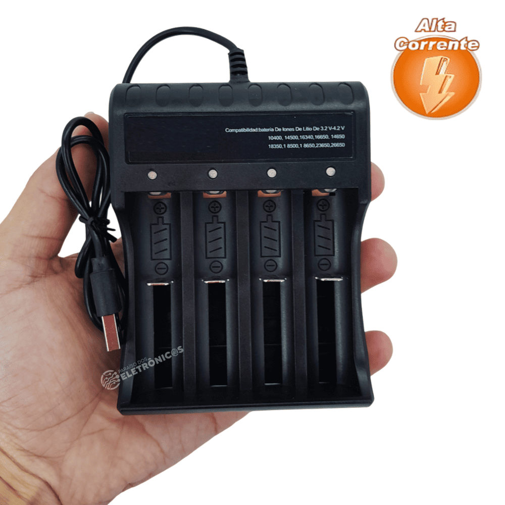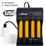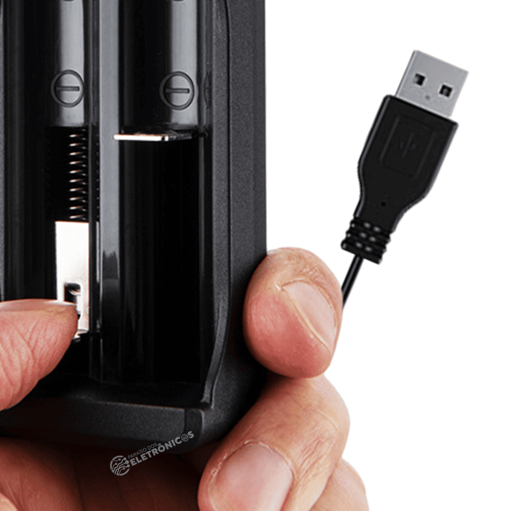 Indicado para carregar Baterias de lanternas tática de vários modelos 18650 / 16340 / 14500 / 18500 / 16650 / 18350 / 10400, de 3.7v ou 4.2v.