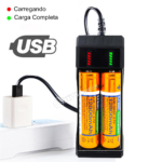 Carregador Universal USB Duplo Com 2 Baterias 18650 3.7V 12800mAh Com Indicador de Carga