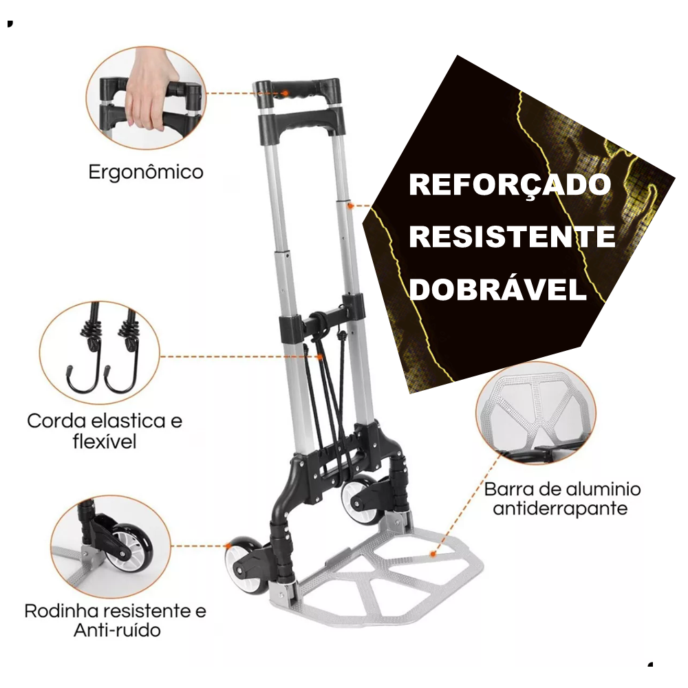 Com capacidade de carga de até 75kg, é perfeito para uso em supermercados, lojas, mercados ou em casa. Sua estrutura robusta e dobrável permite fácil armazenamento quando não está em uso. Leve, resistente e prático, é um acessório essencial para quem precisa transportar compras ou itens pesados com frequência.”