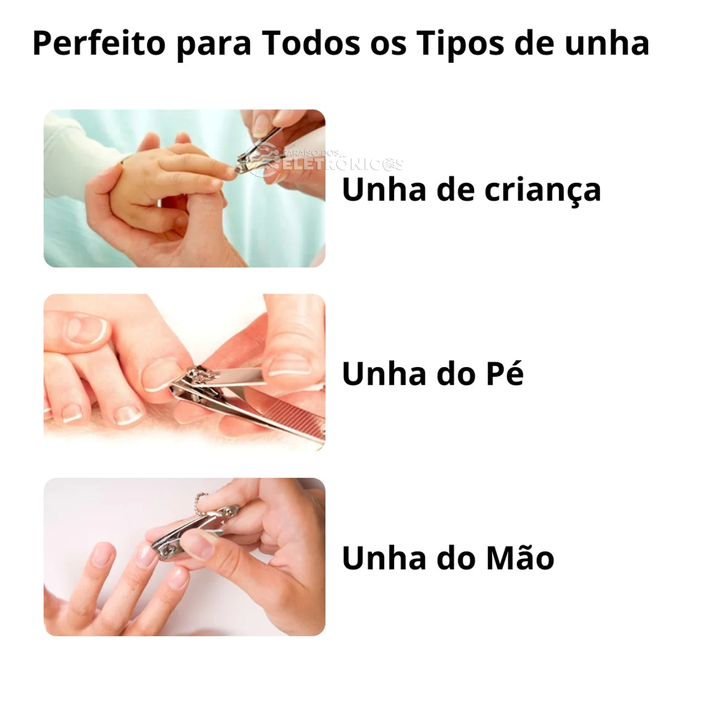 Resistentes e duráveis, seguem elevados padrões de qualidade, oferecendo excelente precisão e resistência. Fabricados em aço carbono niquelado e cromado. Seu formato anatômico facilita o corte das unhas com mais conforto. Lâmina curva que acompanha o formato natural das unhas para um corte preciso, alavanca dimensionada para reduzir o esforço.