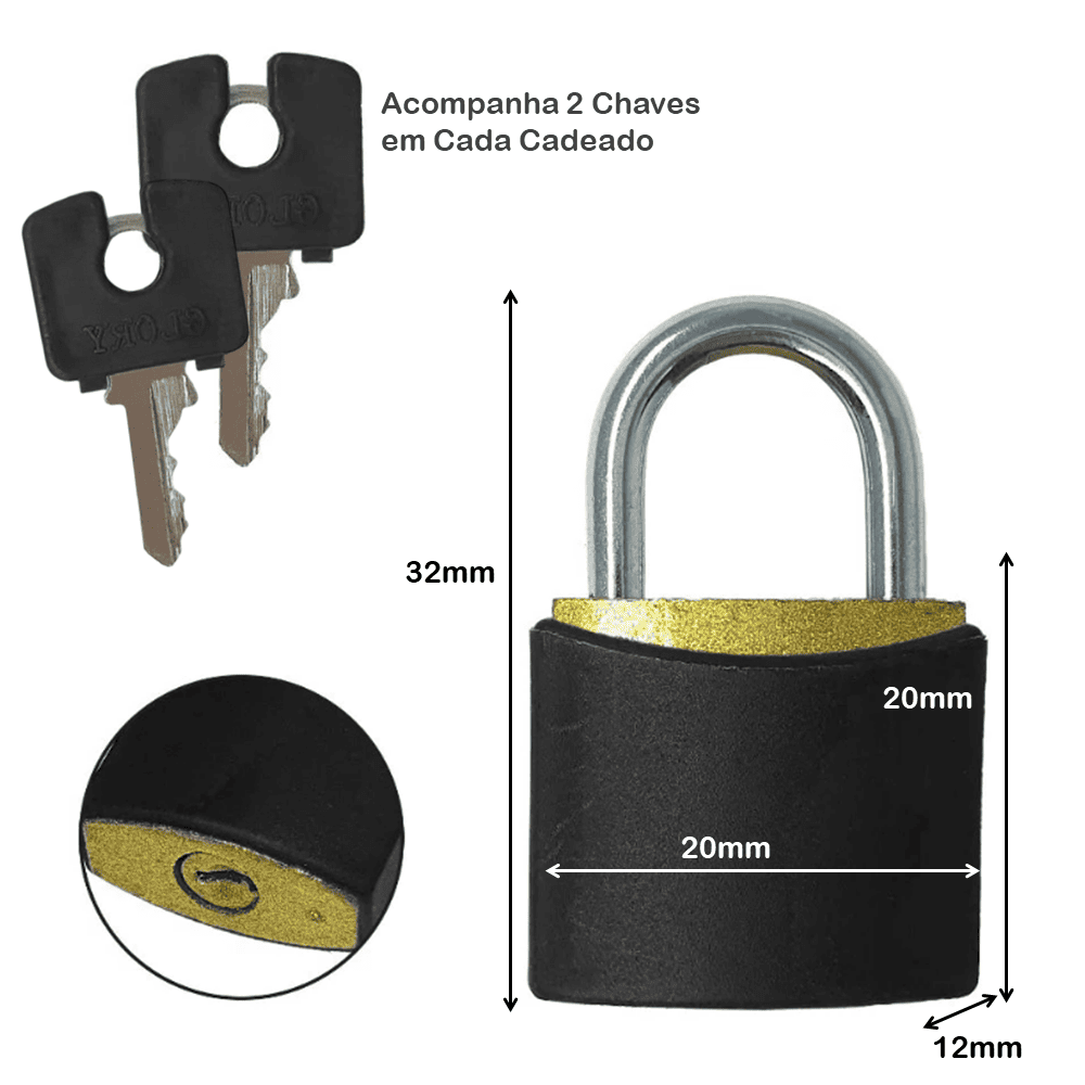 Itens resistentes desenvolvidos em diversas dimensões para utilização em diversos tipos de fecho. Acompanha 2 chaves em cada cadeado.