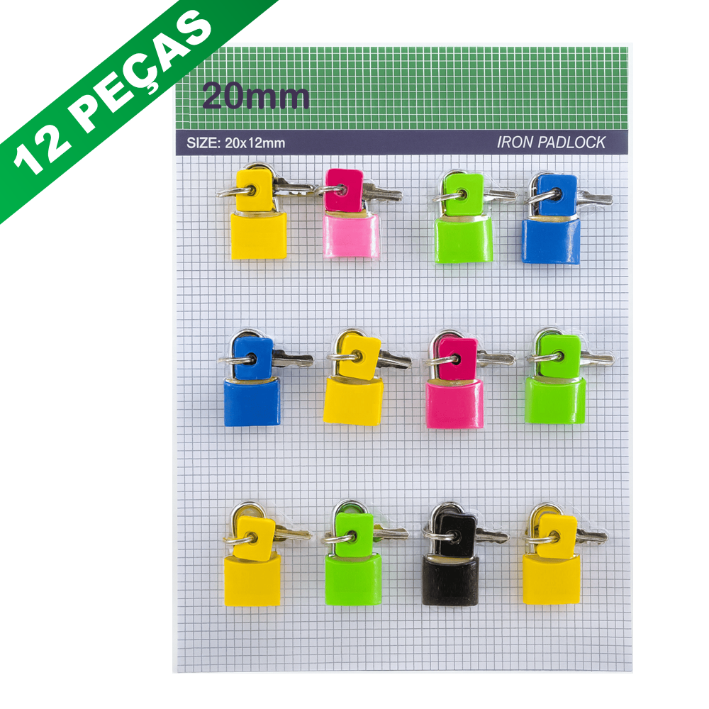 Cartela Com 12 Cadeados Coloridos 20mm (2cm)