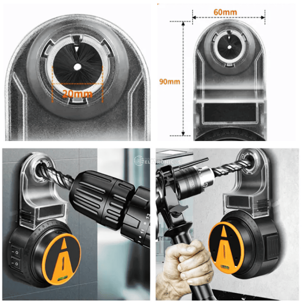 Resistente construído em material ABS de alta qualidade, o coletor de pó é resistente a impactos e arranhões, adequado para uso a longo prazo. Acessórios de perfuração profissionais com qualidade excepcional e instalação rápida. Os detritos descarregados da perfuração são sugados automaticamente para o aspirador de pó.