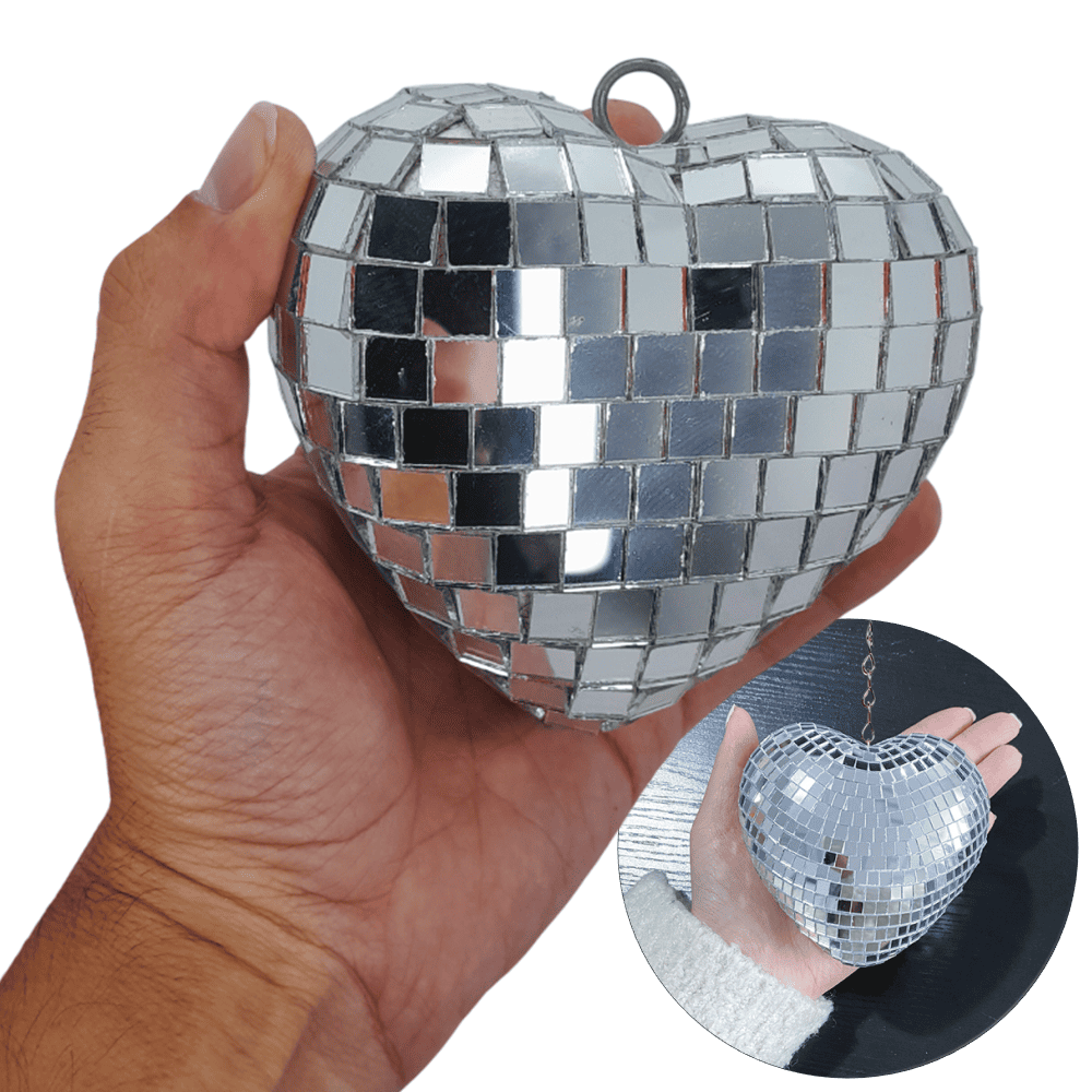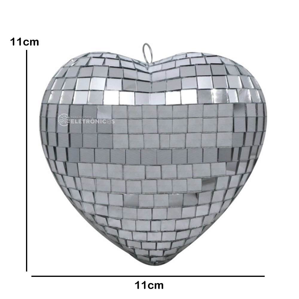 Coração espelhado para palco discoteca festa show baladas bar aniversario espelho efeitos brilhante especial ilustrativo para decoração etc. Medindo apenas 11cm por 11cm. Para um melhor efeito, os globos espelhados têm que ser usado com lâmpadas de foco fechado apontado direcionado para a bola do espelho. Projetando um efeito de brilho nas superfícies quando um holofote é direcionado Diretamente para o coração espelhada causando um efeito ilustrativo para sua festa. Os globos espelhados aumenta o charme da sua festa balada Pode ser usado somente como decoração, e efeitos brilhantes.