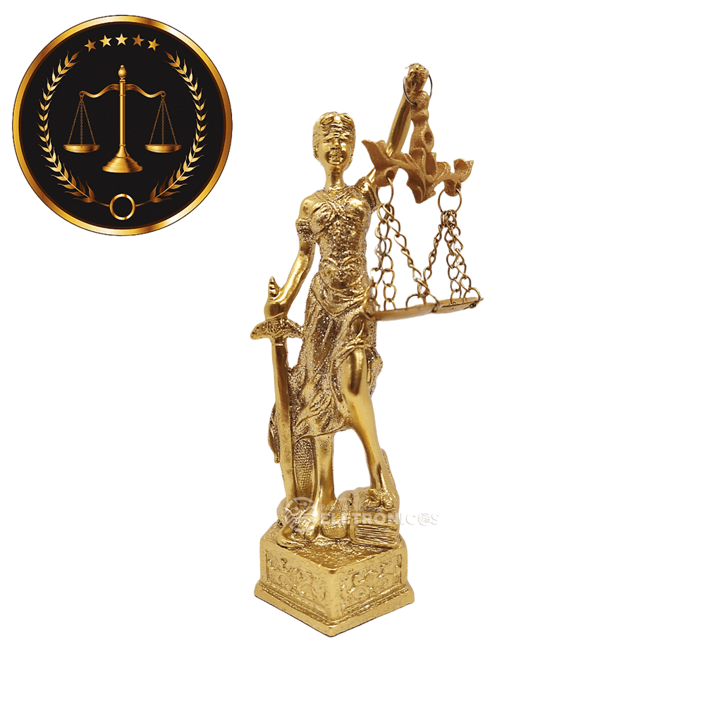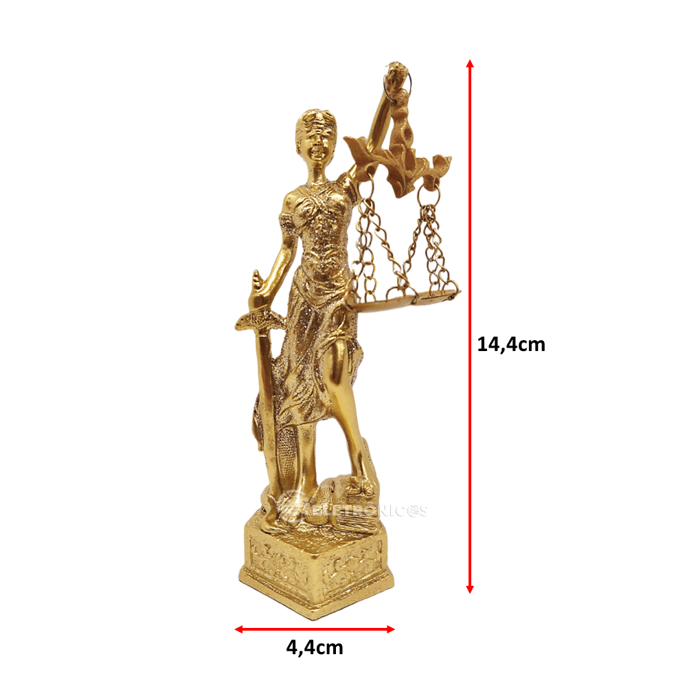 Excelente opção de Presente para Formatura de Direito, também é ideal para decorar escritório de advocacia, mesa de juiz e advogados casas, sítios, empresa entre outros. Deusa Têmis proporciona a igualdade, a verdade e o equilíbrio da sociedade, lembrando que os olhos vendados da deusa simboliza sua imparcialidade, sabedoria e luz interior.Com material metálico e pintura na cor dourada o produto possui alta durabilidade, trazendo um pouco da decoração retrô.