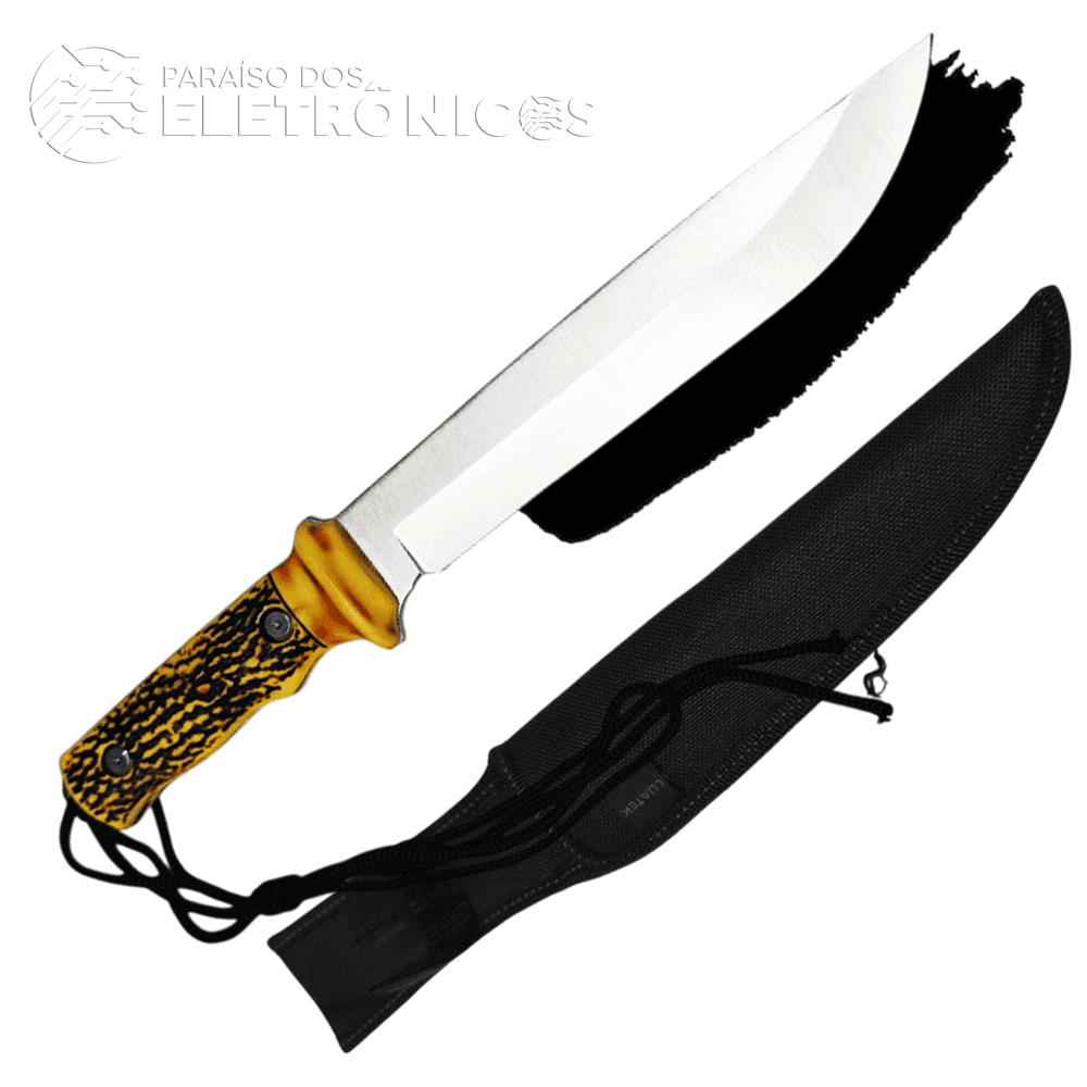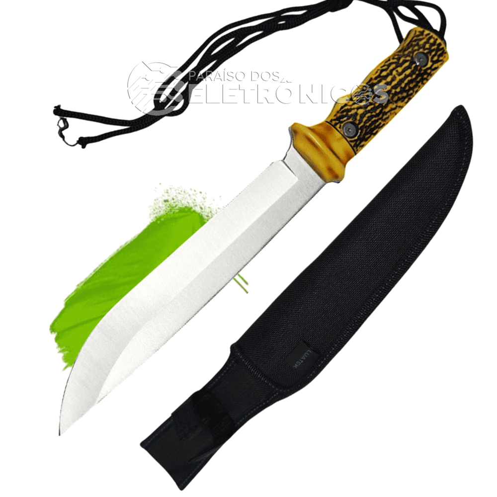 Acompanha bainha resistente com presilha, ideal para transporte seguro e proteção da lâmina, trazendo mais praticidade para o seu dia a dia.
