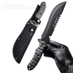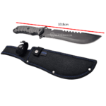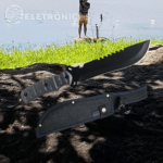O cabo da faca é revestido com material emborrachado, proporcionando uma pegada confortável e segura, essencial para trabalhos prolongados. Com um comprimento total de 33,8 cm e um cabo de 14 cm, a faca oferece um bom equilíbrio entre controle e força. O peso líquido de 280 gramas contribui para uma manipulação ágil sem comprometer a solidez. Acompanha uma bainha resistente, facilitando o transporte e armazenamento seguro da ferramenta.