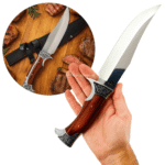 A Faca Modelo G56 é a combinação perfeita entre desempenho e design. Com uma lâmina em aço inoxidável de alta resistência, ela garante cortes limpos e precisos, ideal para churrascos, acampamentos e uso cotidiano. Seu acabamento polido e o formato curvo proporcionam uma excelente penetração e controle durante o uso, mantendo o fio afiado por muito mais tempo.